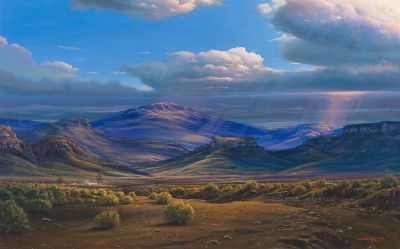 A3 limited edition (80), signed and numbered Andrew Cooper print of his Dry River Bed Karoo painting.