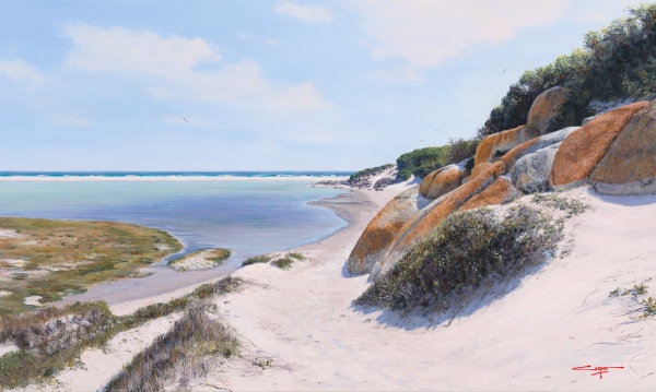 A3 limited edition (80), signed and numbered Andrew Cooper print of his Down to the Beach, Noordhoek painting.